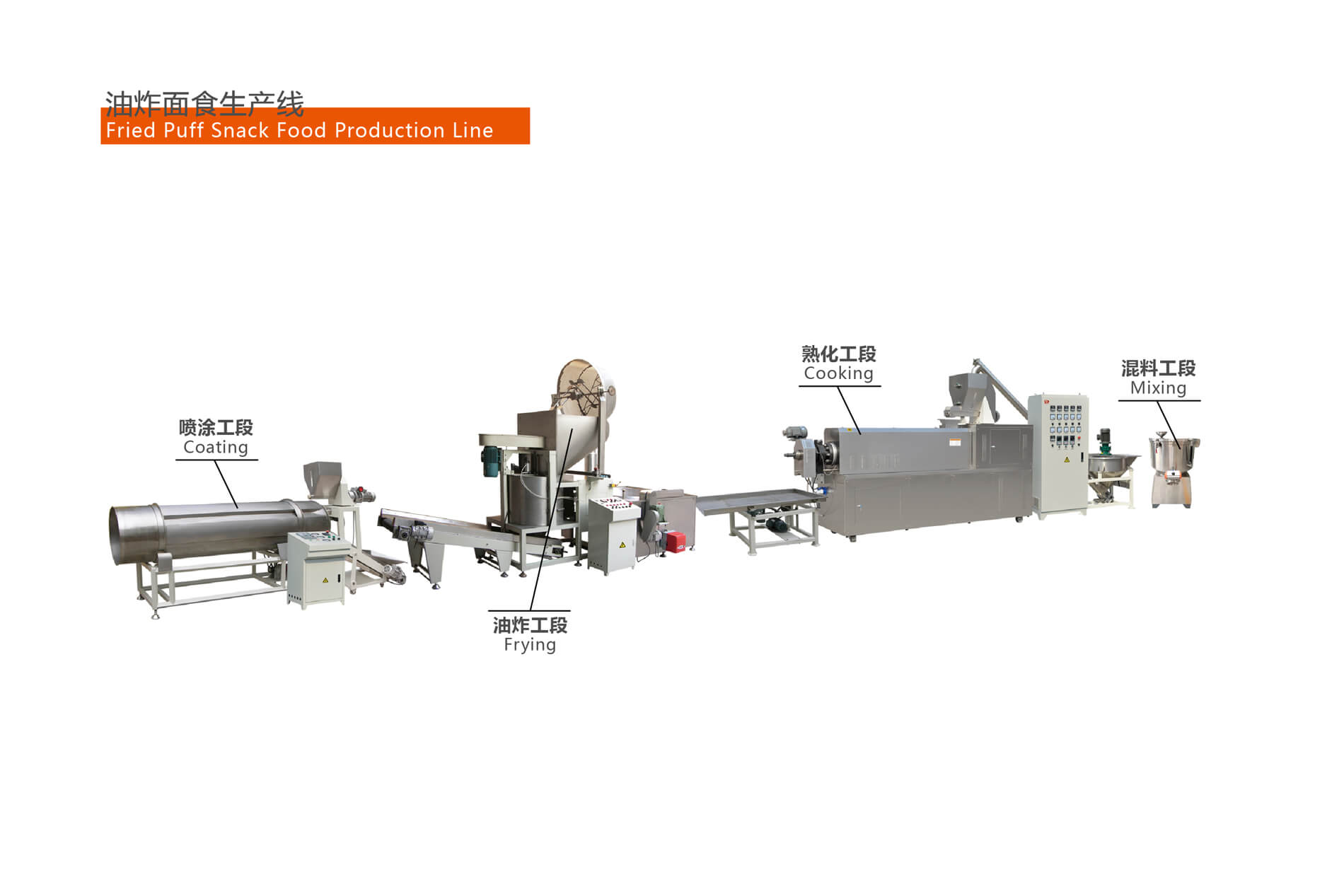 तला हुआ गेहूं का आटा स्नैक उत्पादन लाइन ट्विन स्क्रू एक्सट्रूज़न तकनीक का एक और नया विस्तारित अनुप्रयोग है। यह उत्पादन लाइन बॉयलर की आवश्यकता के बिना कच्चे माल के मिश्रण, भाप से पकाने, पकाने, फुलाने, आकार देने, तलने और मसाला बनाने को एकीकृत करती है। उत्पादन प्रक्रिया सरल, कुशल और पर्यावरण के अनुकूल है। उत्पादन के लिए आवश्यक कच्चा माल या तो एकल चावल नूडल्स, आटा, मकई का आटा, मकई का आटा और अन्य सामग्री, या मिश्रित सामग्री हो सकता है। मोल्ड और सहायक उपकरण को बदलकर, उत्पाद का आकार बदला जा सकता है, और उत्पादित नूडल्स, जैसे चावल की पकौड़ी और सलाद में एक कुरकुरा और गैर चिकना स्वाद होता है, जो उपभोक्ताओं को बहुत पसंद आता है।